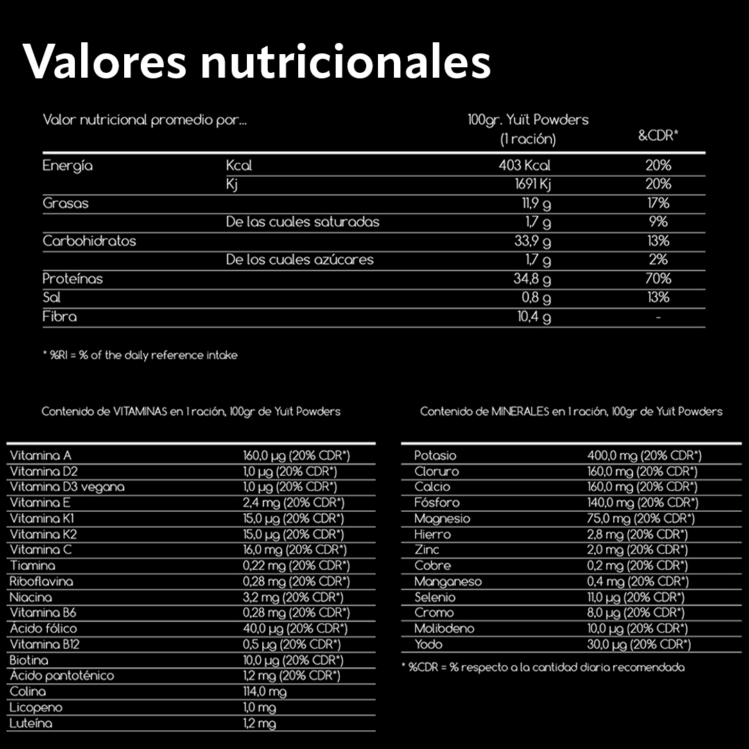 Check here the list of ingredient that make up the Yuït powders and here their complete nutritional profile.