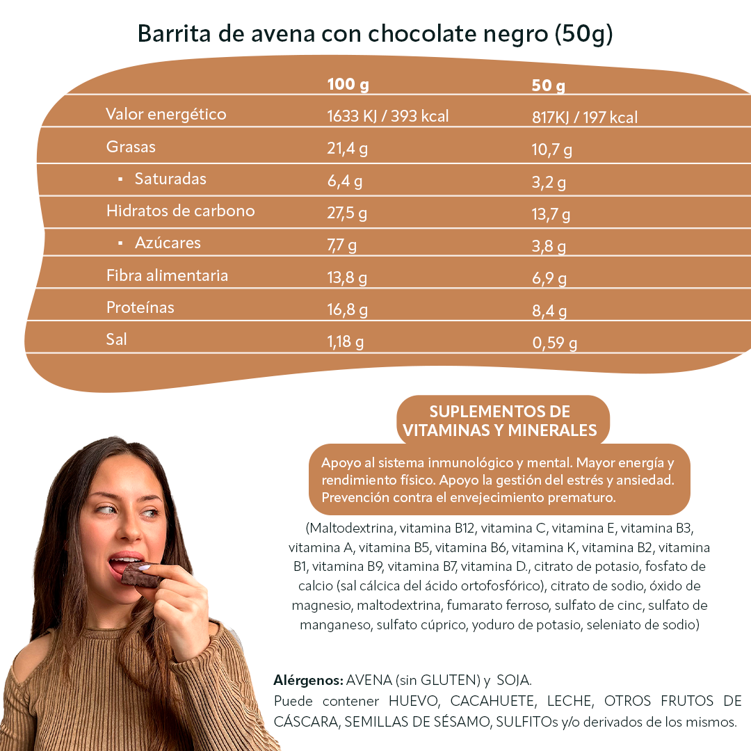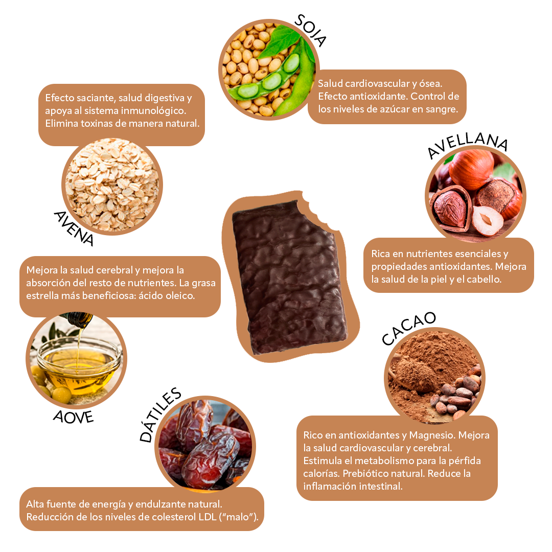 ESTO NO ES SÓLO UN SNACK: Es COMIDA nutritiva y completa en formato barrita. Caja de 12 barritas de irresistible chocolate negro con avellana tostada. ¡Con virutas deliciosas de chocolate!